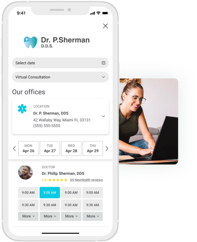 73% of patient appointments are booked on NexHealth after business hours. By not offering online scheduling, you’re missing out on potential revenue.