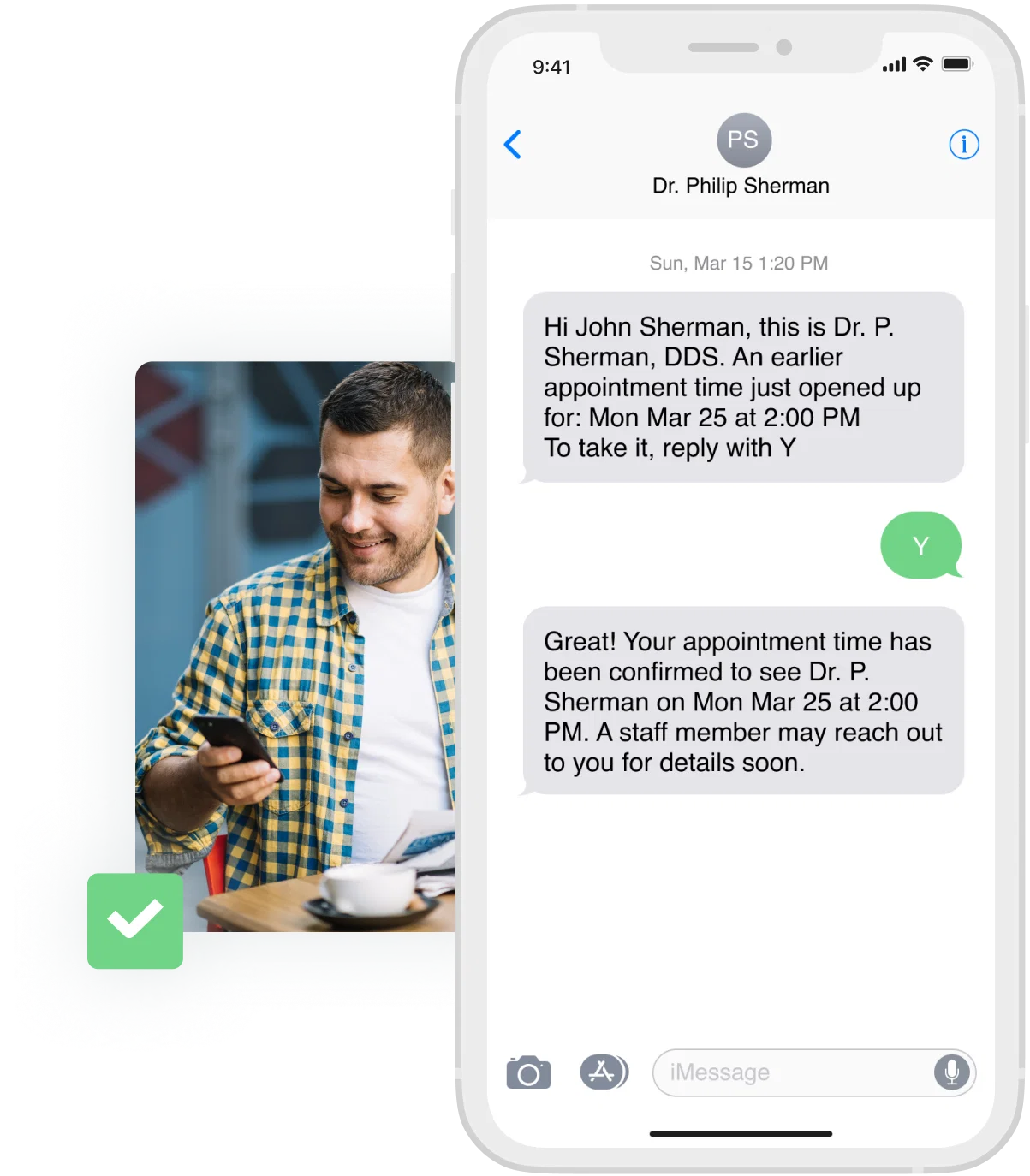 Even busy patients can respond to texts. Automated messages to patients on the waitlist help make the decision easier for them.
