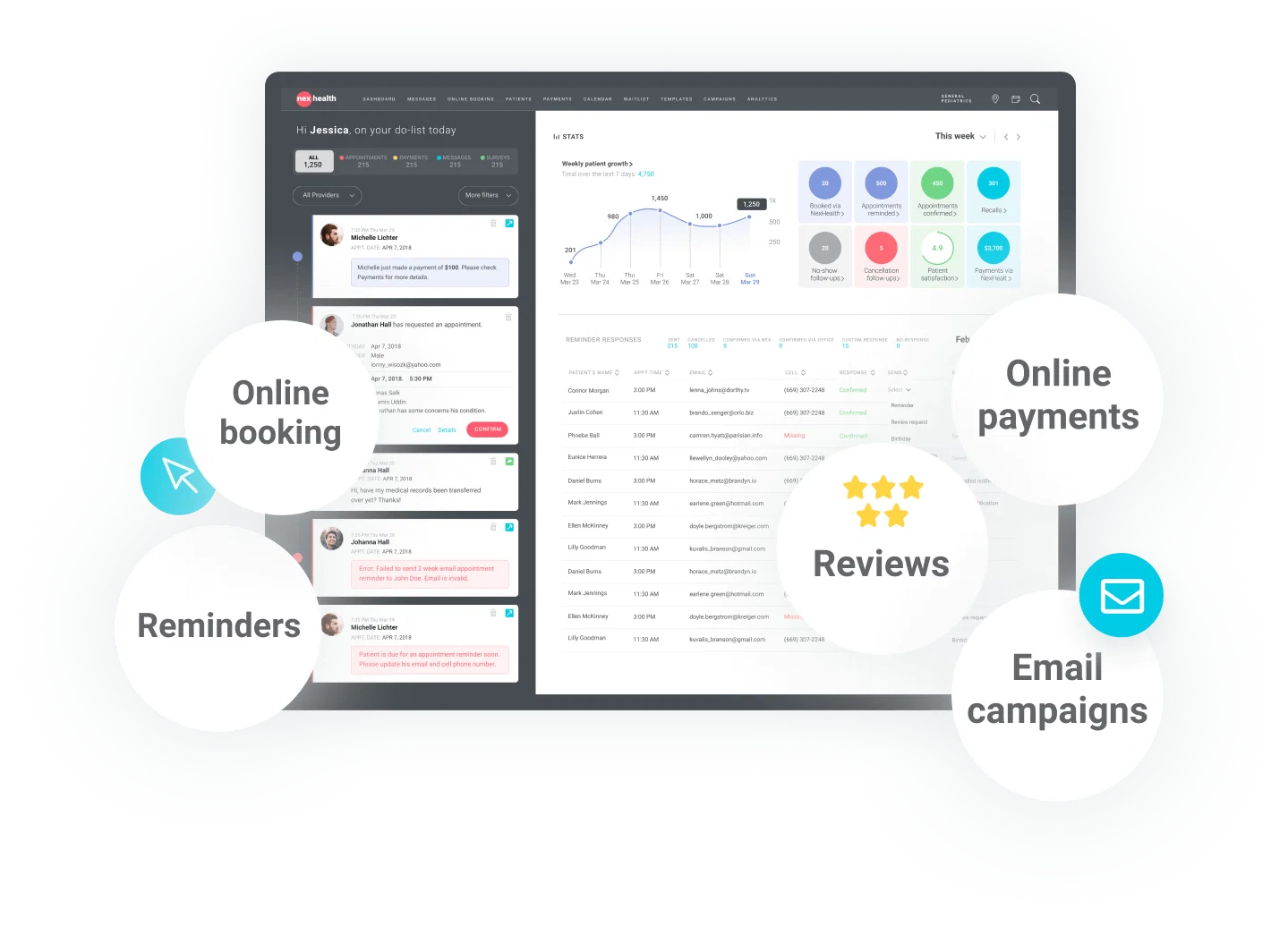 NexHealth integrates with 100s of practice management software to make your workflow simpler. We give you an all-in-one dashboard to manage your entire patient experience from one place.